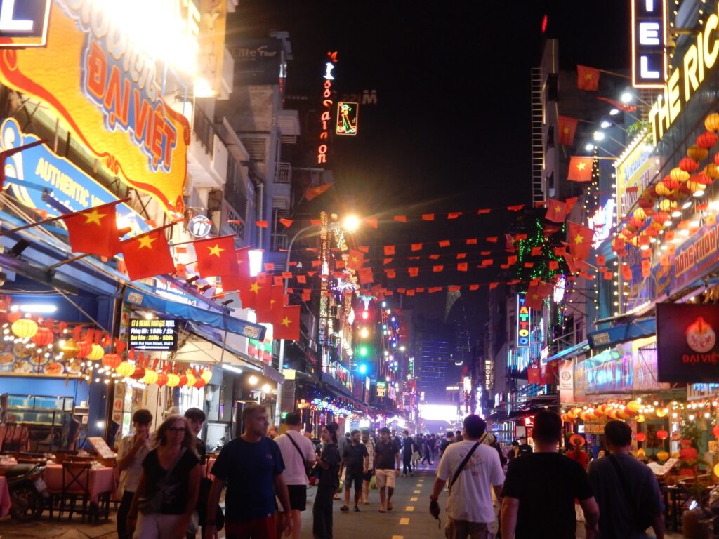 夜は、ホーチミンのナイトスポット、ブイビエン通りへ。